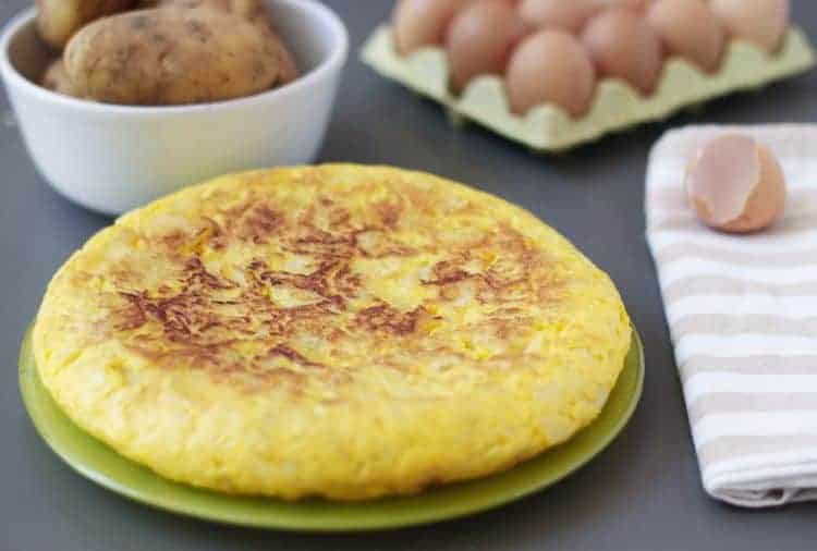Slide the tortilla back into the pan and return to the low heat (hopefully not much egg/potato has stayed on the plate, if it has, return it to the pan and tuck it back underneath the tortilla).